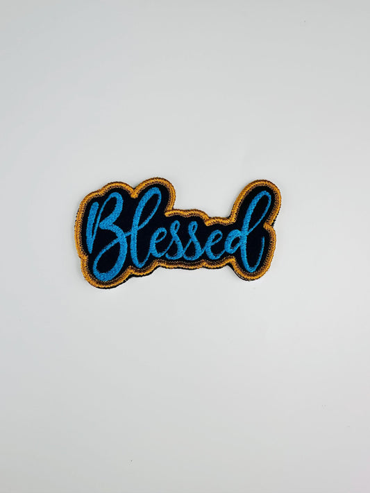 Blessed Embroidery patch. Patch is Sew on with iron on adhesive for placement. Christian patch 8.2