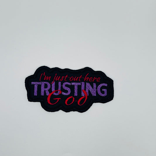 Trusting In God Sew On Embroidery Patch with adhesive backing. Christian Embroidery. Great on Bible Covers and tote bags items. 6.33